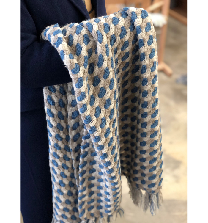 중급 클래스에서는 대형 직조기 또는 8종광, 16종광룸을 이용하고 직물의 컬러 패턴을 기획해 보는 수업과 직물을 짜는 테크닉에 중점을 두어 수업을 진행합니다.