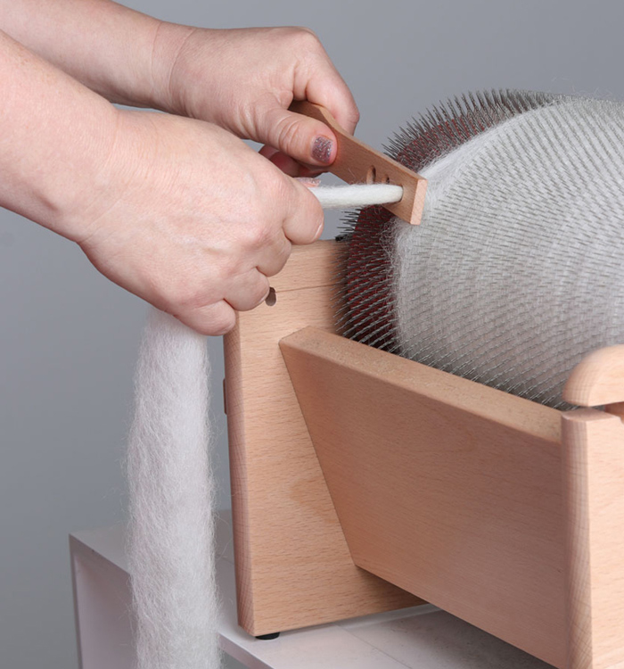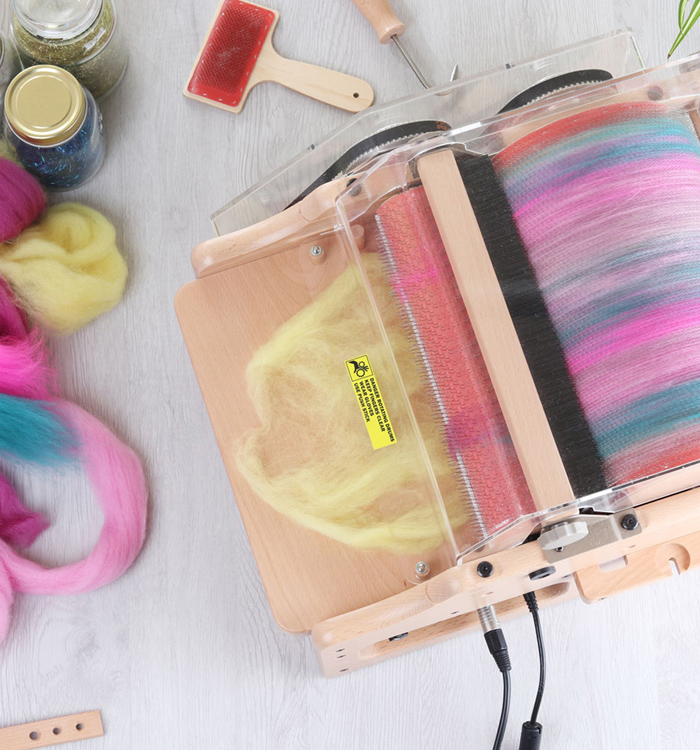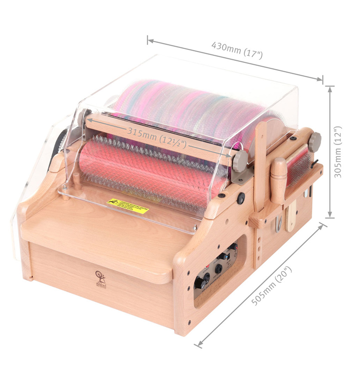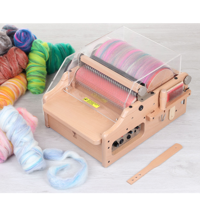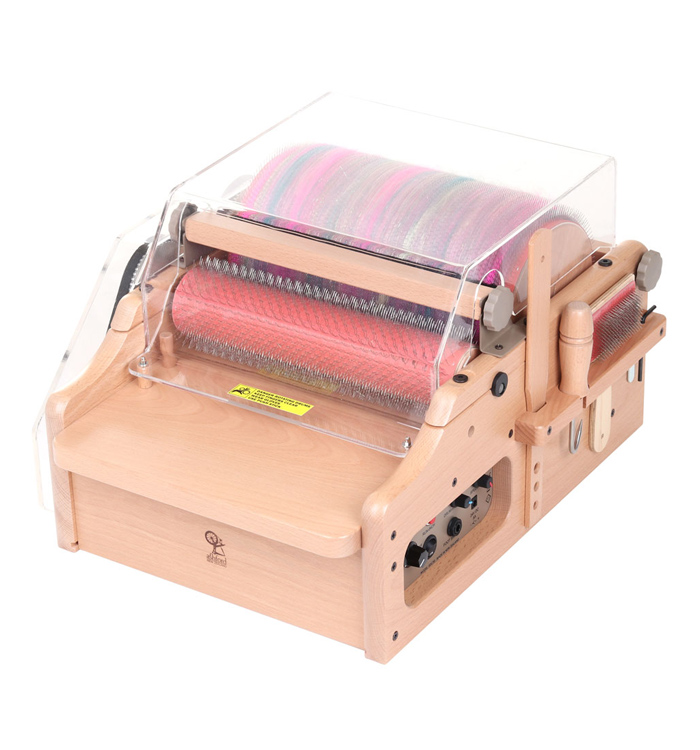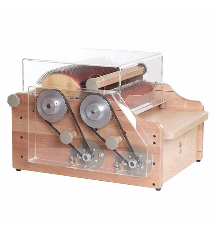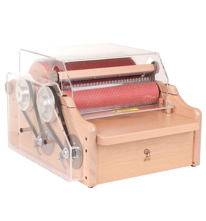 This electric drum carder has two exceptionally powerful motors to enable fleece
