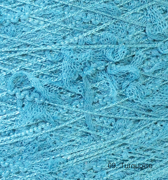폴리에스테르 튤을 테이프 형태로 잘라, 가는 심에 붙이고 실을 염색하였습니다.