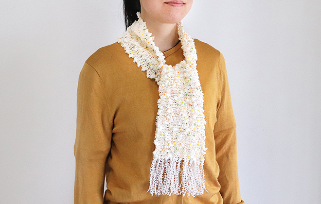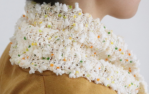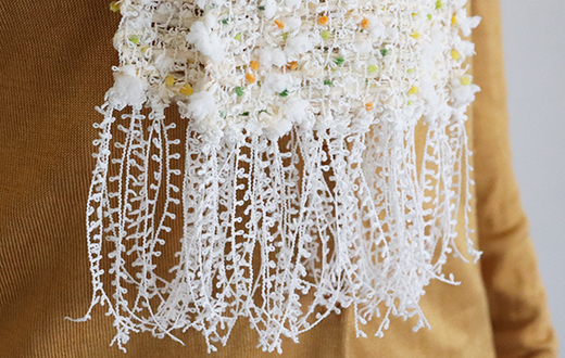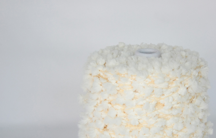 러셀 직기로 만든 폼폼얀은 흥미로운 질감을 가지고 있습니다.
