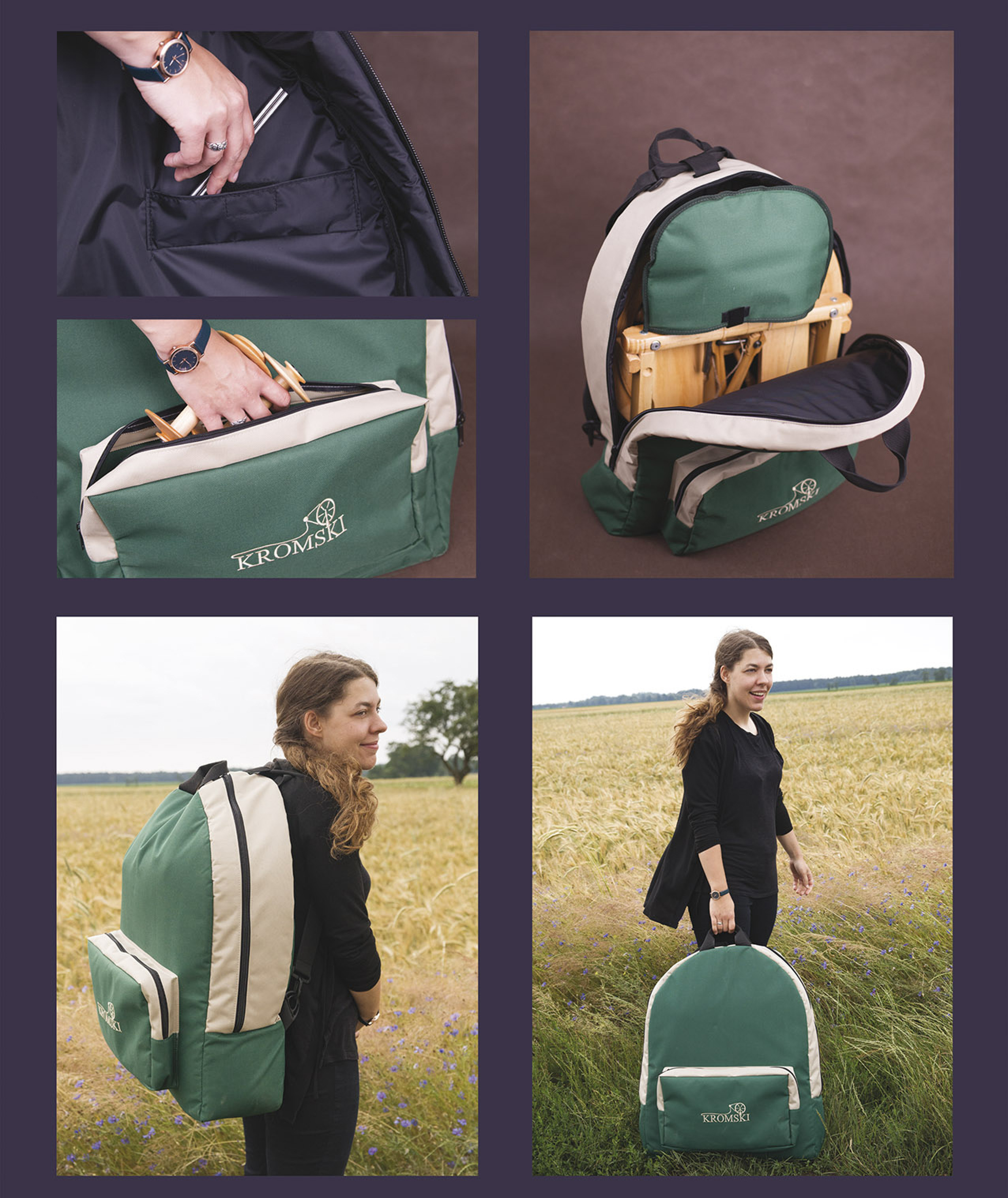 These features combined with the options of adding a Jumbo Flyer kit make this a very unique traveling wheel. Jumbo Flyer kits expand the spinners range in two ways. First, the type of yarn created can vary from lace-weight to super bulky art yarn because of the larger orifice on the jumbo flyer. Subsequently, the jumbo bobbin allows spinners double capacity of the regular Kromski bobbin from over 4 oz. up to half pound! This means longer, continual drafts for skeins with greater yardage.