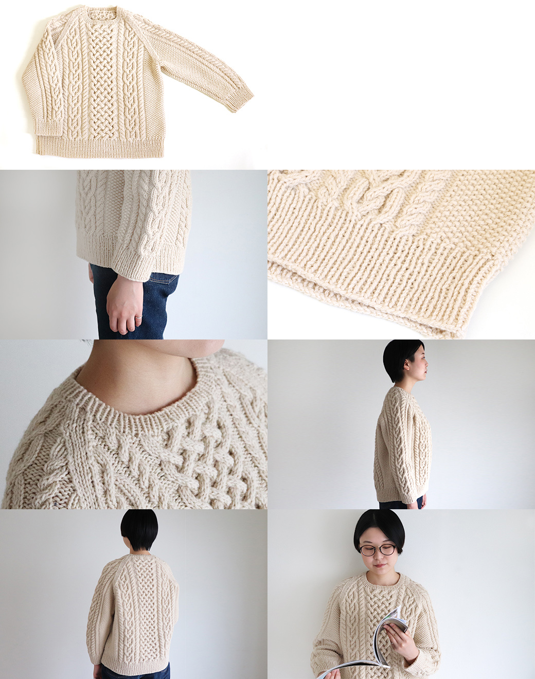 아브리루의 아란 패턴을 가진 래글런 스웨터 Kit입니다.