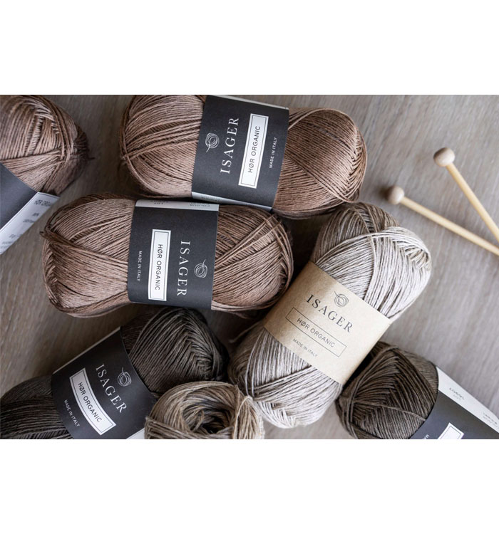 ISAGER HØR ORGANIC can be used individually with two or more strands held together,