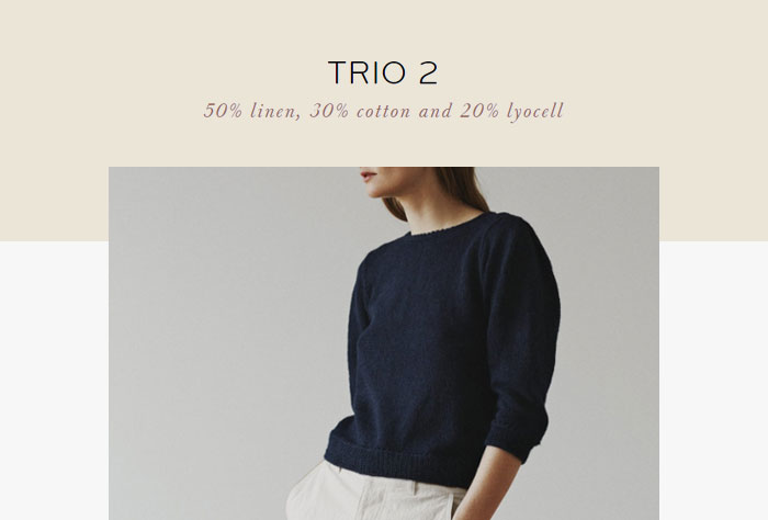 ISAGER TRIO 2 is made of 50% linen, 30% cotton and 20% Lyocell.