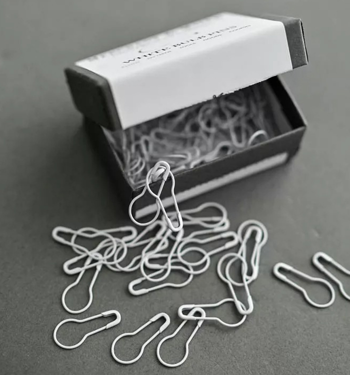 전구 핀은 택을 안전핀에 깔끔하게 걸 수 있도록 하며 사용법은 더할 나위 없이 간단합니다.