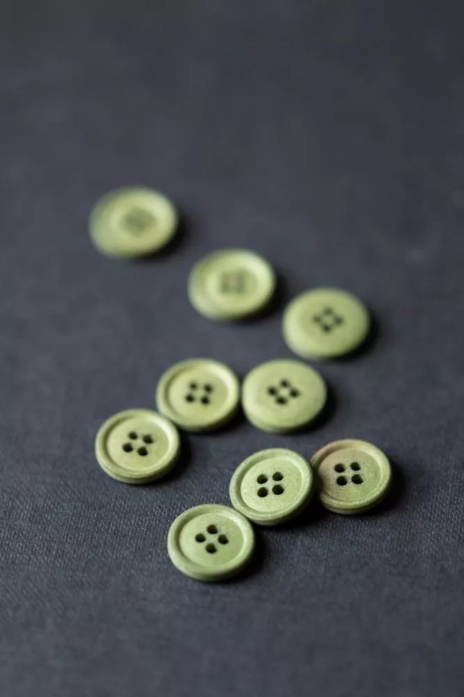 뜨개 옷과 직물 옷에 어울리도록 자연스럽고 깊은 그린색으로 이 단추들을 염색했습니다.