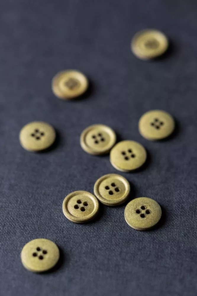 뜨개 옷과 직물 옷에 어울리도록 자연스러운 올리브색으로 이 단추들을 염색했습니다.