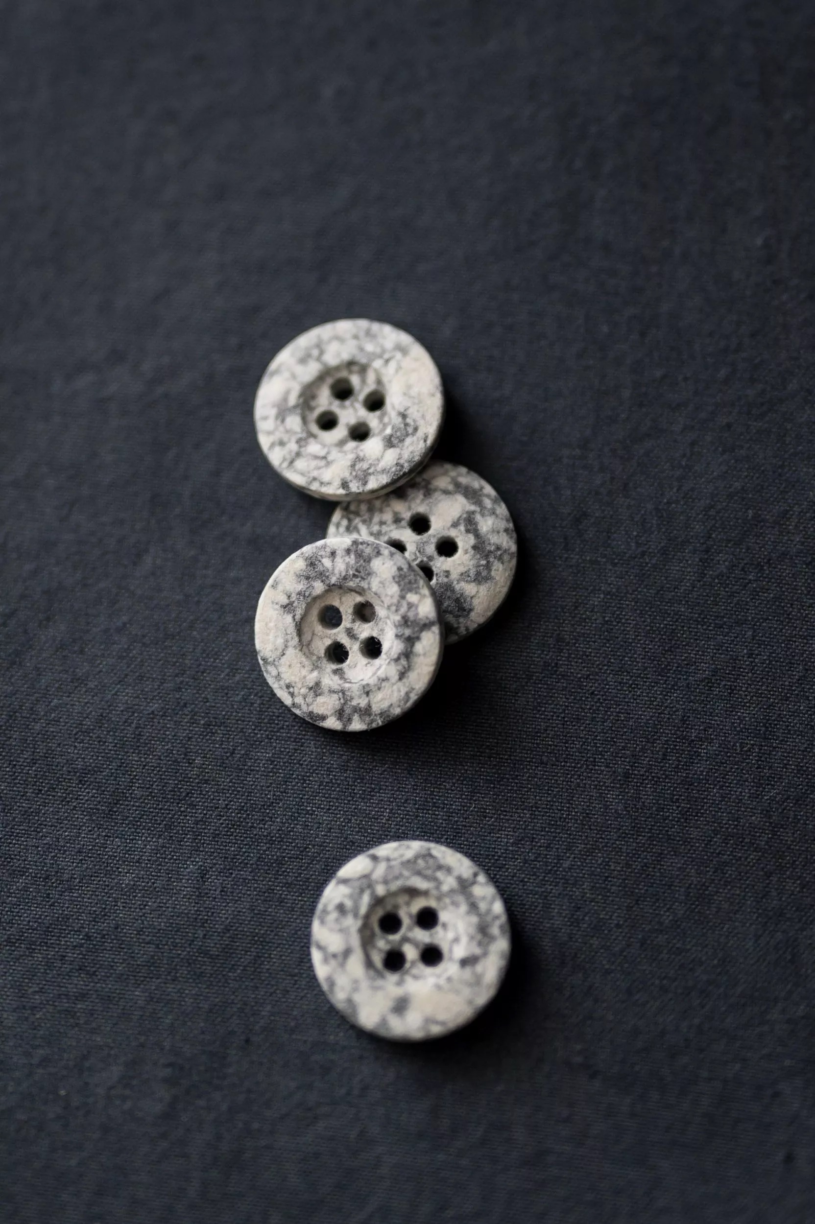 4홀로 이루어진 18mm로 재활용 레진 소재의 그레이색 단추입니다