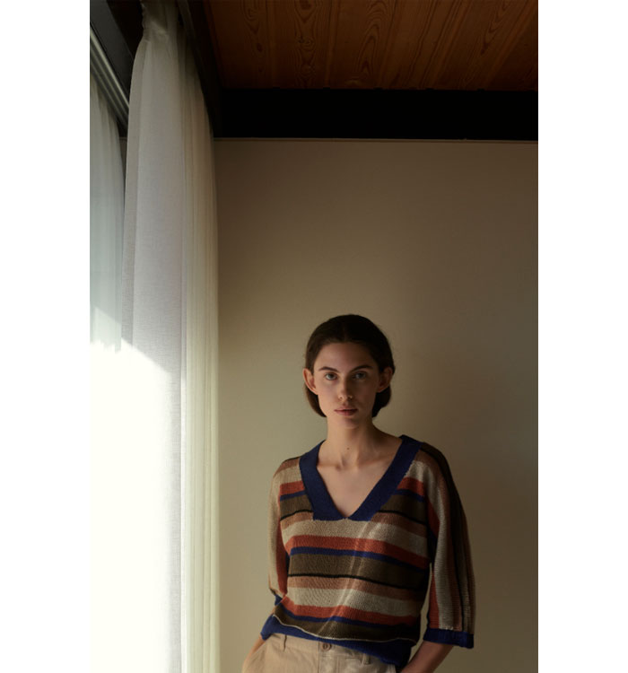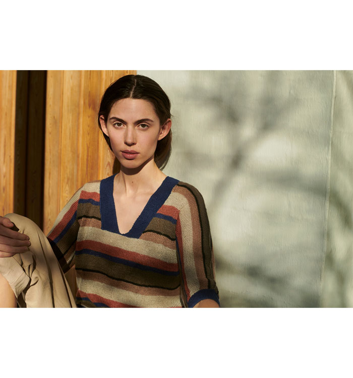 매끈하고 은은한 광택, 시원한 촉감의 Isager Hør Organic 실을 사용한 초여름, 초가을과 어울리는 Barcelona 풀오버 패키지 입니다.