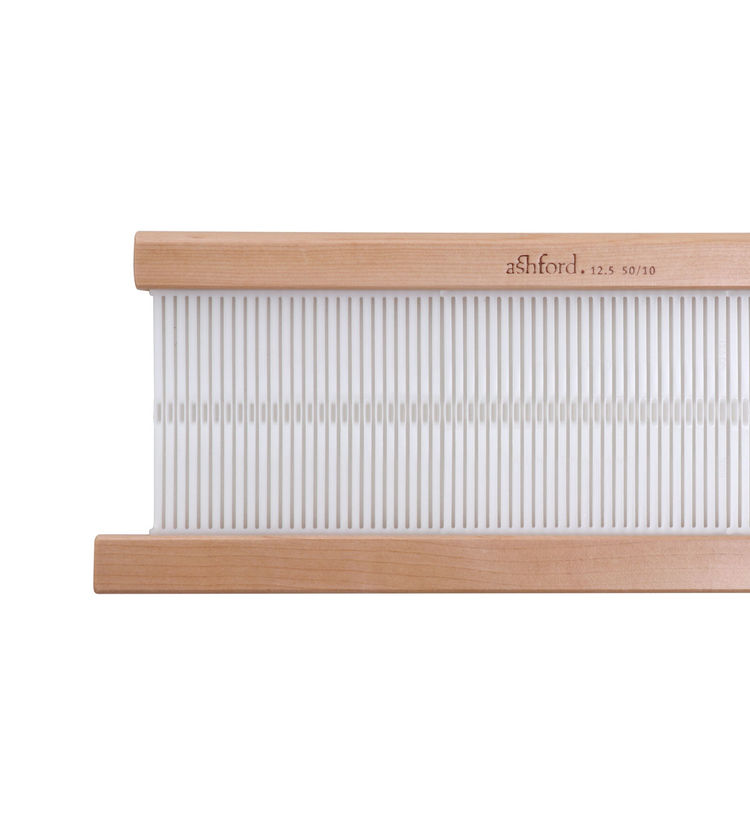 Reeds are available for differing yarns. The 2.5, 5, 7.5 and 10 dpi (10, 20, 30 and 40/10cm) reeds feature the wide eye for novelty yarns.The fine 12.5dpi (50/10cm) and the NEW extra fine 15dpi (60/10) reeds are also available. Made from strong, durable nylon with Silver Beech rails. The reeds come in 40, 60, 80 and 120cm (16, 24, 32 and 48ins) widths.