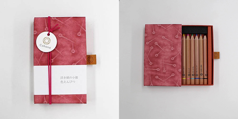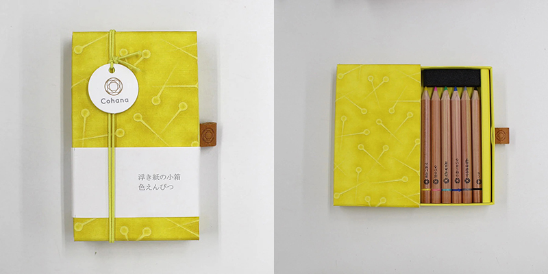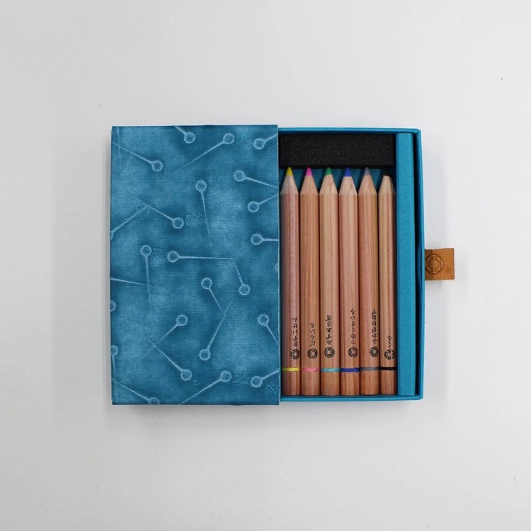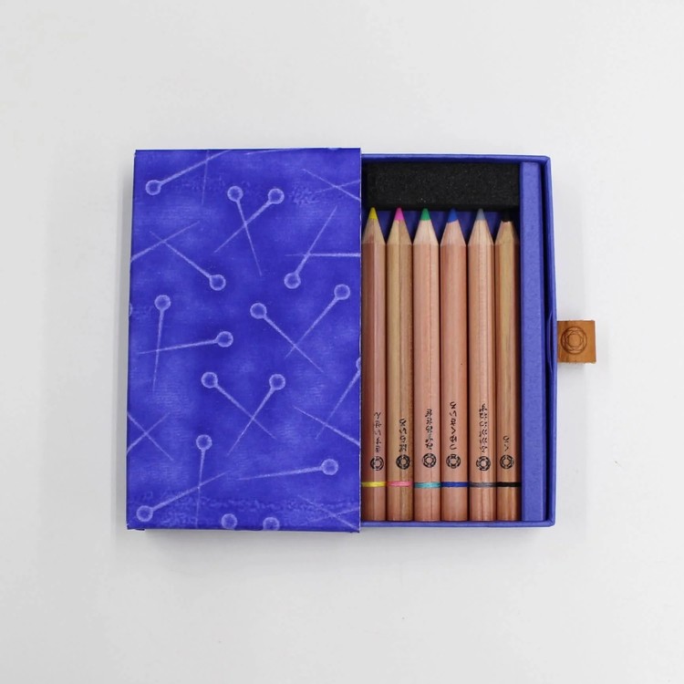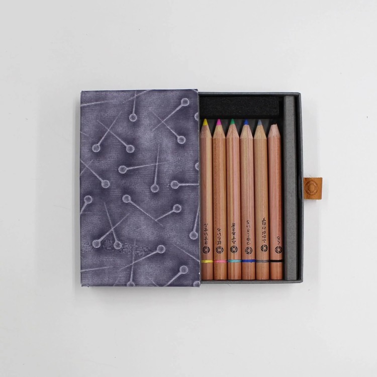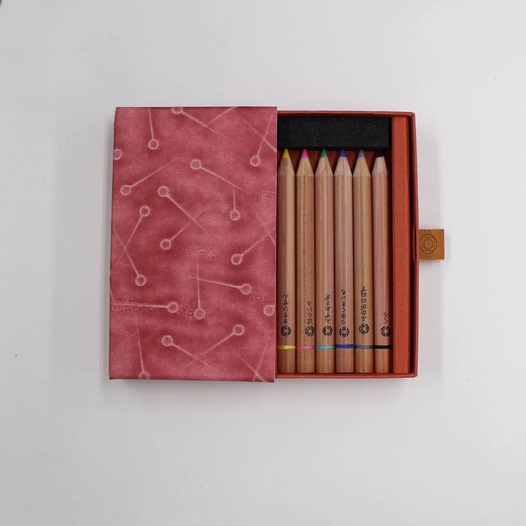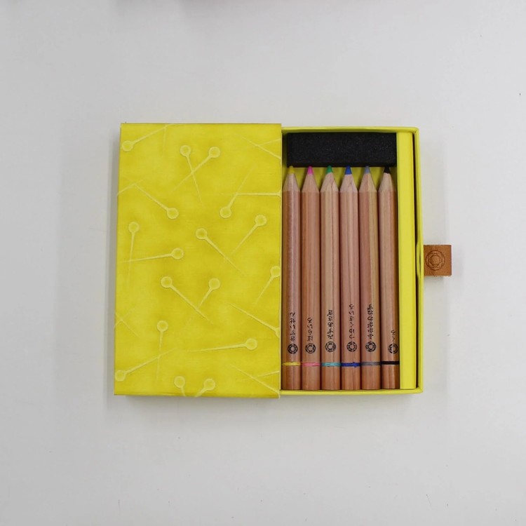 여섯 개의 미니어처 색연필이 우키가미, 양각 일본 종이로 만든 절묘한 기념품 상자에 깔끔하게 들어 있습니다.