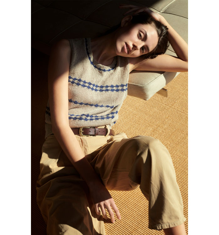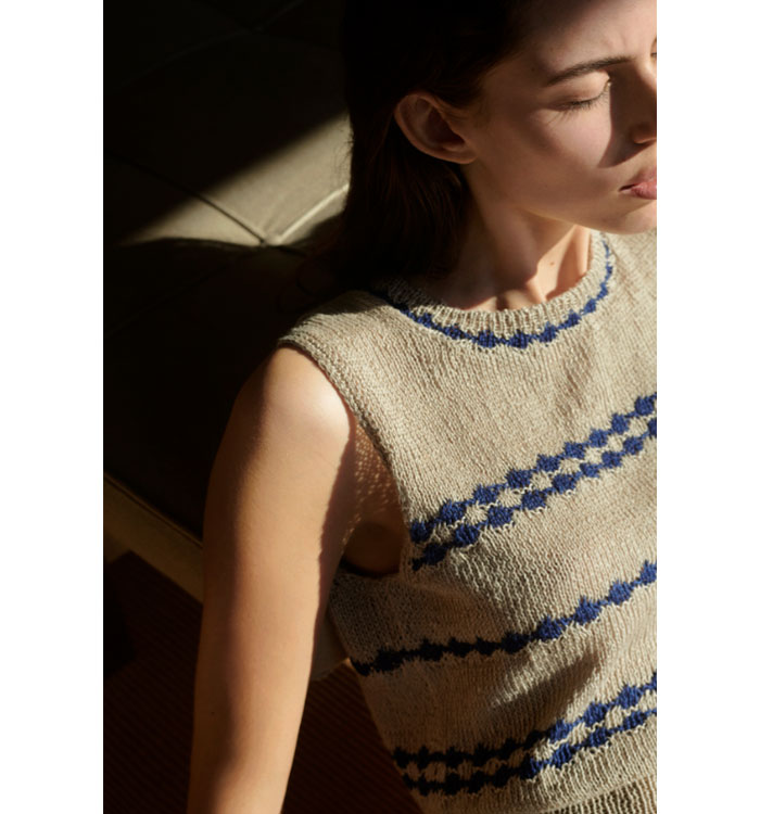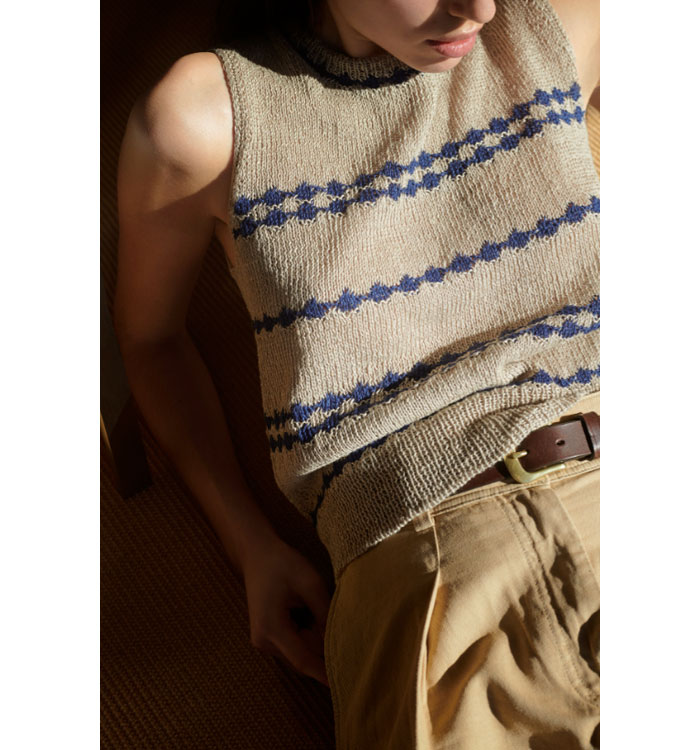 인디고 컬러 와 내츄럴 린넨 소재로 컬러도 시원하고 정말 통기성이 좋은 여름 니트 입니다