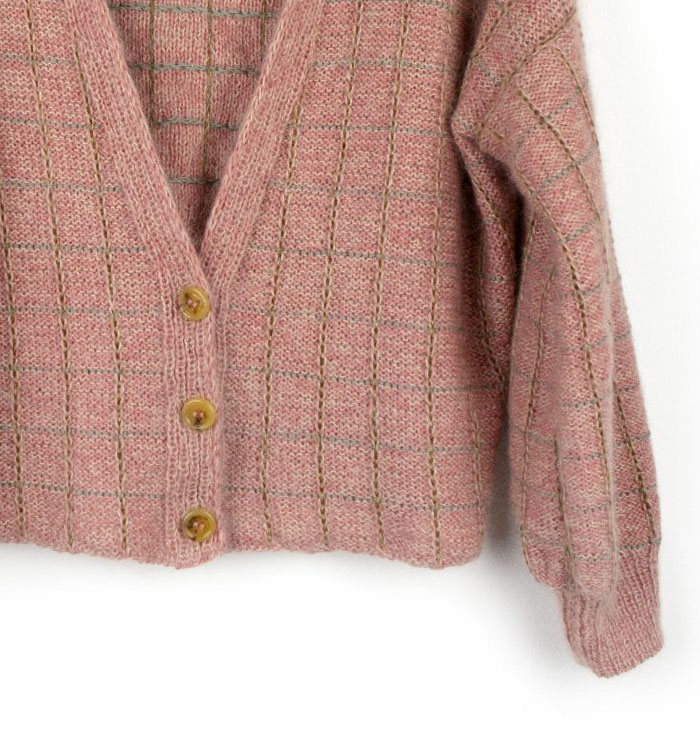 이후, 앞판과 소매에 사용된 동일한 패턴을 뒤판에도 적용하여 조화로운 텍스처를 완성합니다.