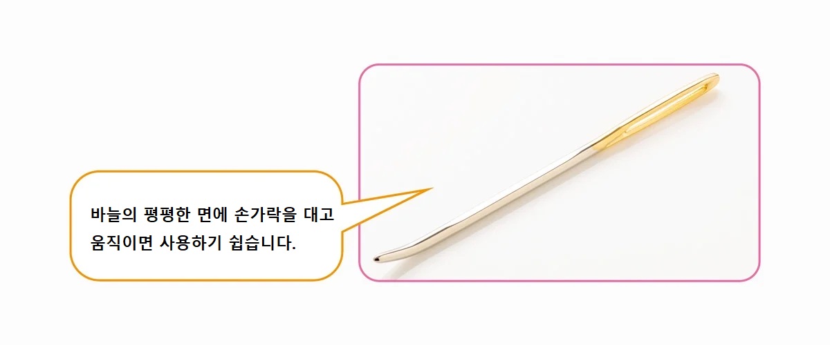뜨개 작품의 실 자투리를 마무리 할 때, 편물 조각을 이을 때나 고무단 마무리에도 사용하기 편리하지요.