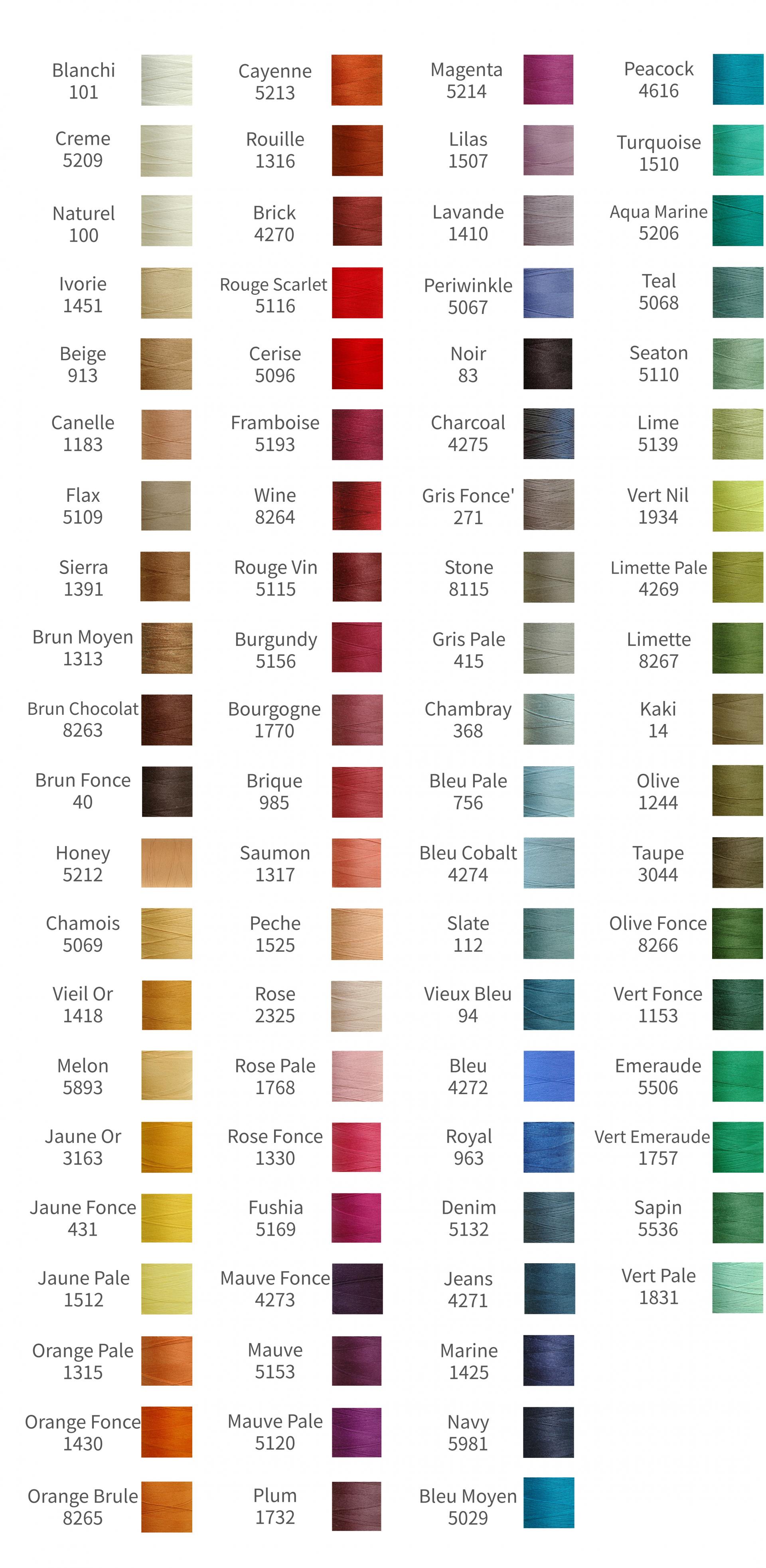 Maurice Brassard의 코튼 실은 80가지가 넘는 색상을 보유하고 있으며 여러 굵기의 실이 있으므로