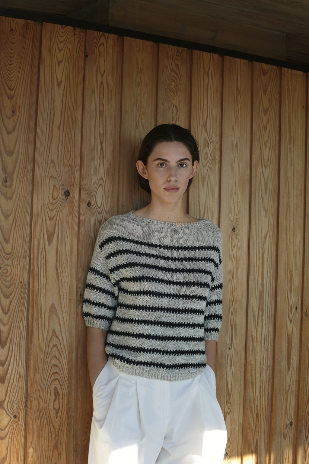 NICE TOP은 Anne Ventzel 의 작품으로써 어깨선이 앞쪽으로 살짝 이동된 심플한 티셔츠 실루엣의 탑입니다.
