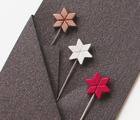 핀의 상단 별 모양 장식은 주석 합금으로 제작되었으며, 오사카에서 왁스 조형과 고무 주조 기법을 통해 섬세하게 완성됩니다.
