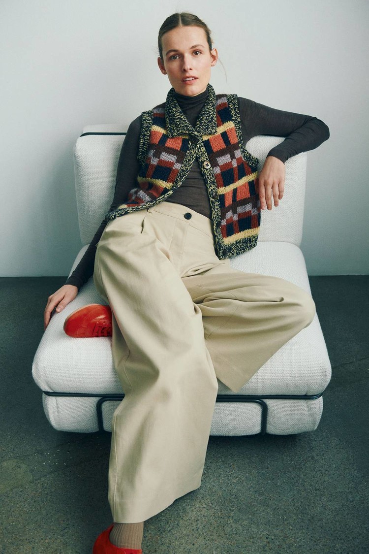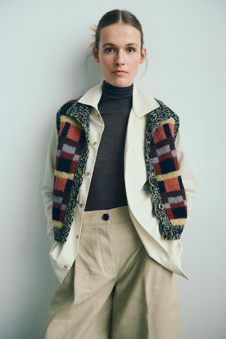 I found it obvious to use the beautiful colours and the abundance of geometrical patterns offered in the draft for knitwear.