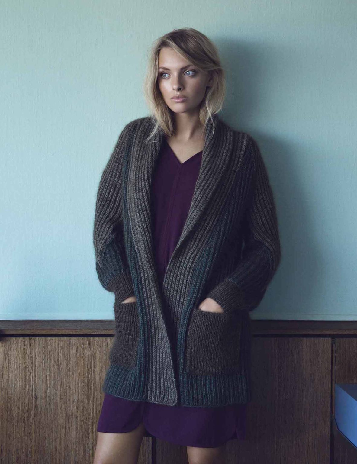 이번 버전은 Isager Sock Yarn과 Silk Mohair로 뜨고, Ribbing 과 포켓은 Isager Jensen Yarn 한 가닥으로 만들었습니다.