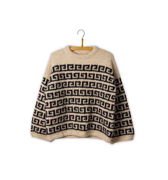 그래픽적인 표현에 마음이 끌렸고, 내가 만든 Athene Sweater에서는 이 그래픽적인 느낌이 포슬포슬한 울 소재 덕분에 조금 더 부드러운 분위기로 표현되었다.