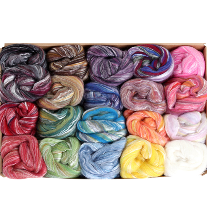 A sumptuous fibre blend in 15 beautiful random colour(Juniper, Pomegranate, Saffron, Cinnamon, Peppercorns, Salvia, Mulberry, Poppy, Seed, Spice, Damson, Vanilla, Storm, Sunset, Sorbet, Gemstone) ways, 4 new to the collection, made from 80% New Zealand merino and 20% silk. The fine 22 micron merino and the lustre of the silk makes this a truly luxurious blend. Create fine, lacy and lightweight yarn for knitting or unique semi-worsted yarns for weaving.
