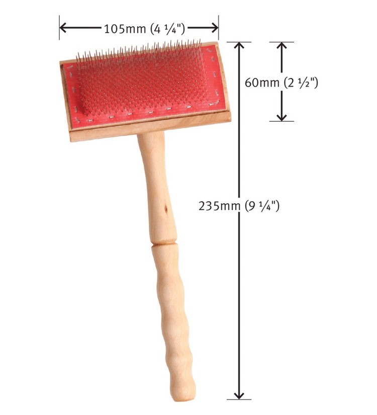This is your first carder for preparing individual staples of fleece wool. The turned handle is comfortable to hold and use. The medium 72 point cloth has stainless steel wire and long-lasting rubber backing. The Silver Beech hard wood is durable and robust. The flick carder can also be used for cleaning the drum carder.