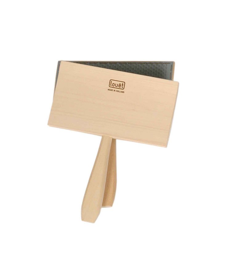 Louet handcards are made of tulip wood, a Dutch Poplar variety. These light weighted handcards have a curved back and ergonomic handles that fit comfortably in your hands. The 19 x 10 cm (7 1/2" x 4") handcards are available in fine (46 teeth per square inch) and extra fine cloth (cotton carders, 110 teeth per square inch); the 10 x 10 cm (4" x 4") handcards are only available in extra fine cloth. In order to ensure a long life, the teeth on all Louet carders are made of high grade plated steel wire.