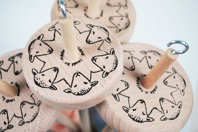 These handy gadgets, printed with sheeps heads on the whirl, can be taken anywhere. We have two models available, bottom whirl and top whirl (conventional). Both of these are unlacquered. Weighs approx 2.82oz (80gr).