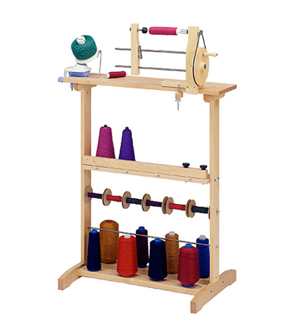 One stand holds it all. The sturdy winding station is designed to accommodate all your winding tools: ball winders, swifts, and bobbin winders.