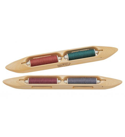 더블 워프트 스레드에 쓰기 좋은 슬림과 레귤러 2가지 타입의 더블 보빈 보트 셔틀입니다. 두개로 나눠진 보빈 쉐프트가 보빈을 하나씩 풀어낼 수 있도록 도와줍니다.