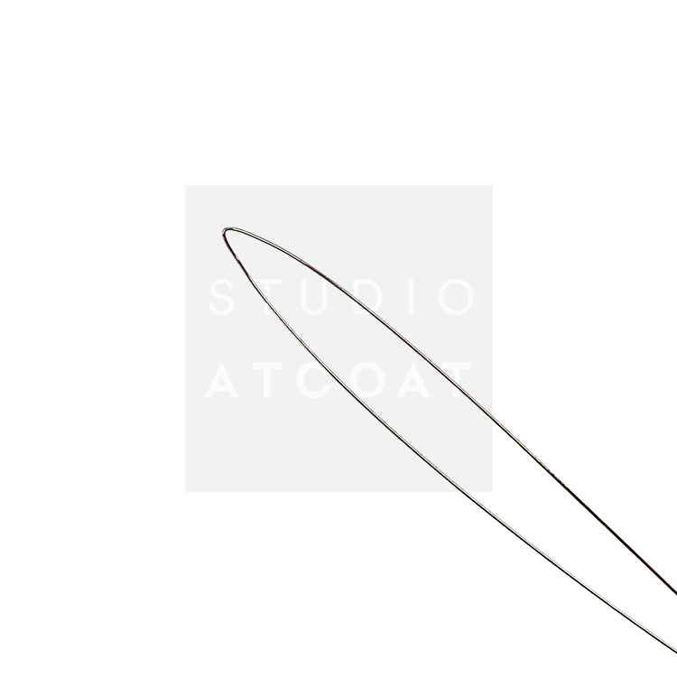 1. 스레더 끝부분 잡고 뾰족하게 만든 뒤, 바늘 구멍 아래에서 위로 스레더를 통과 시킵니다