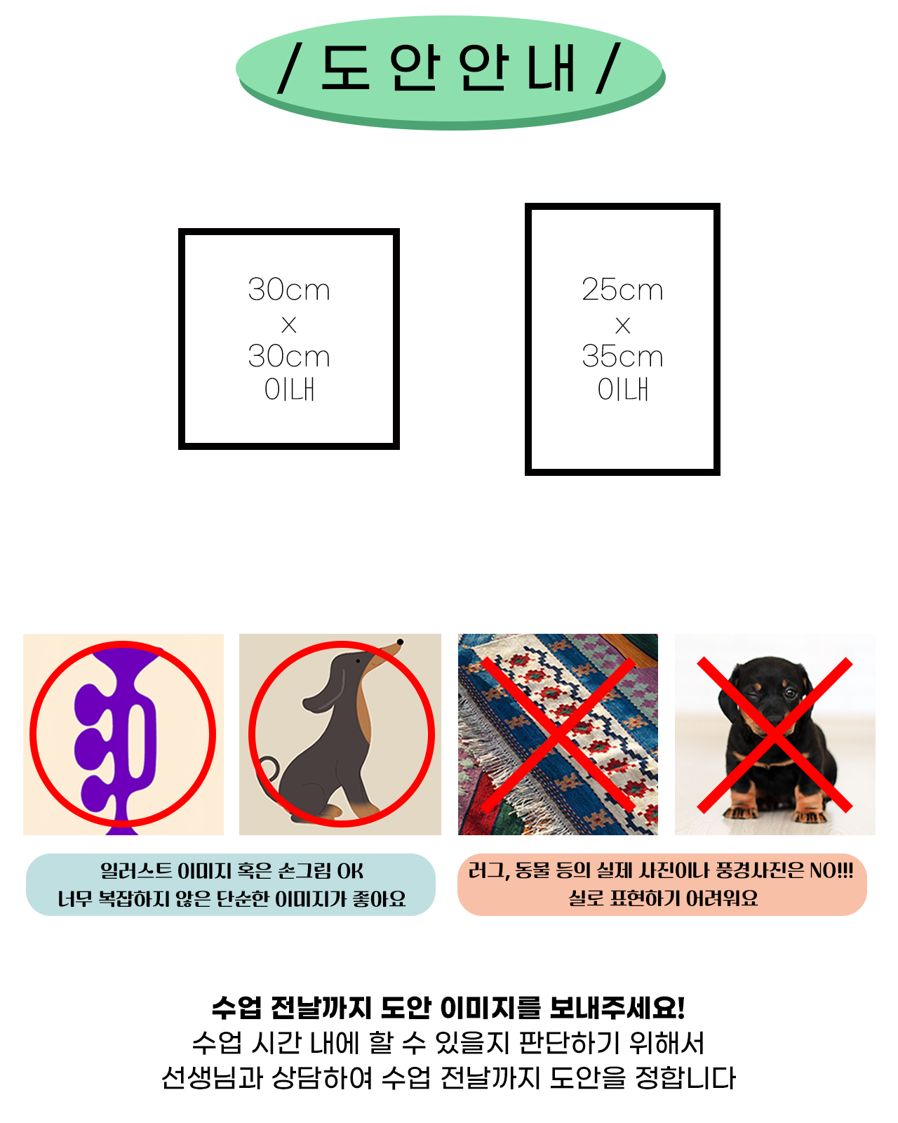 - 수업 일정을 변경하실 경우 최소 이틀 전에 알려주세요
