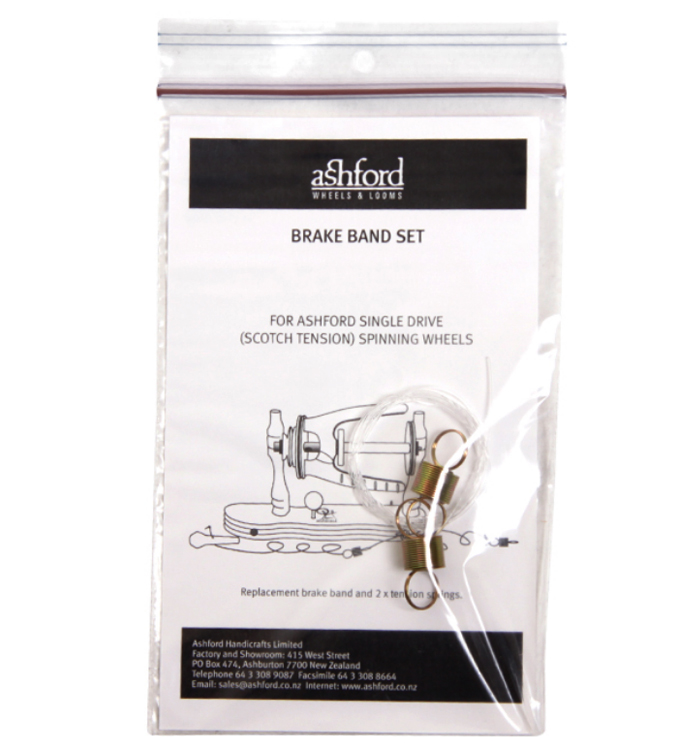 For Ashford single drive (Scotch Tension) spinning wheels. Replacement brake band and 2 x tension springs.