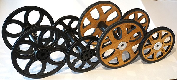 The standard plastic bobbins have a large capacity and are very durable. You can even dye and boil them with your yarn still on the bobbin. Majacraft Spinning Wheels come with at least three plastic bobbins.