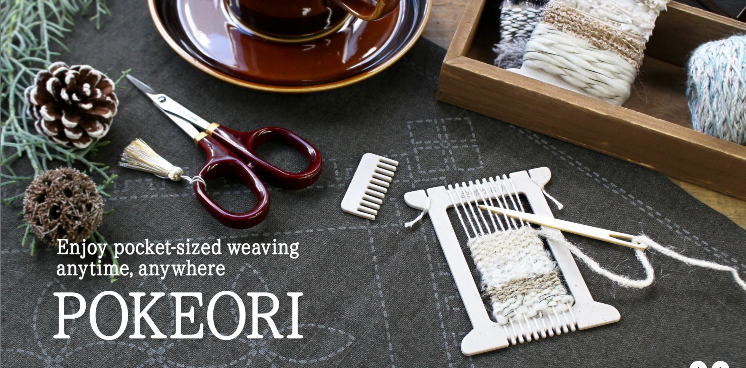 코하나의 포케오리는 언제 어디서나 잠깐 꺼내어 짜는 즐거움을 만끽할 수 있는 주머니 크기의 직조 틀입니다.
