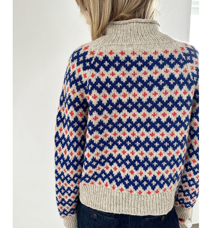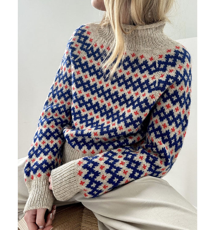 INGE SWEATER는 탑다운 방식으로 뜨며, 패턴은 라운드로만 작업됩니다.