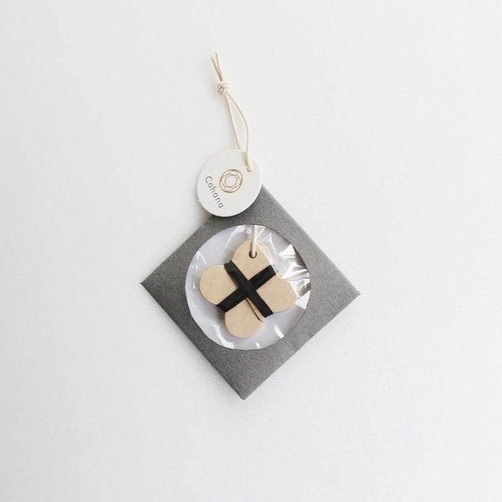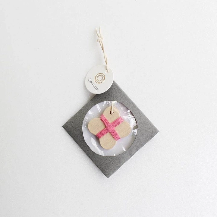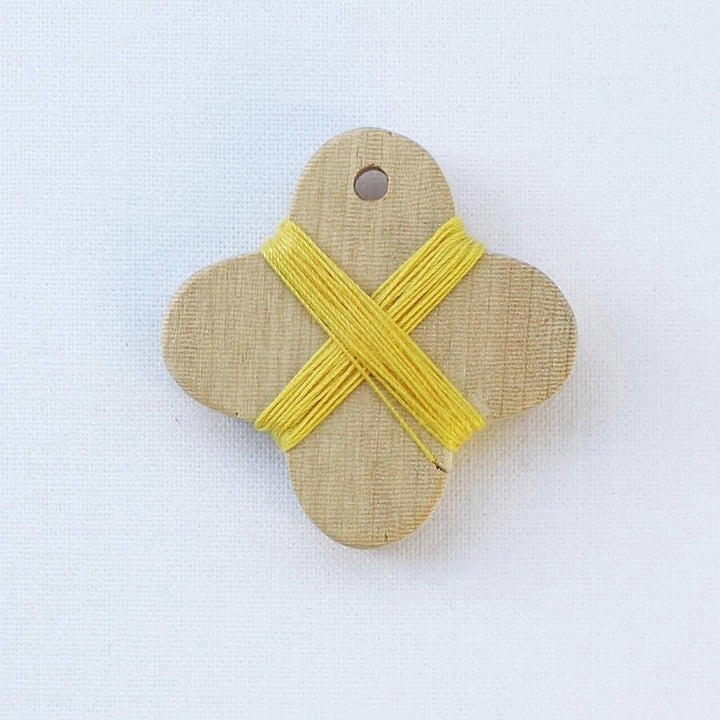 코하나의 꽃모양 나무 스풀입니다. 실을 감는 용도 외에 팬던트 또는 액세서리로도 활용할 수 있습니다.
