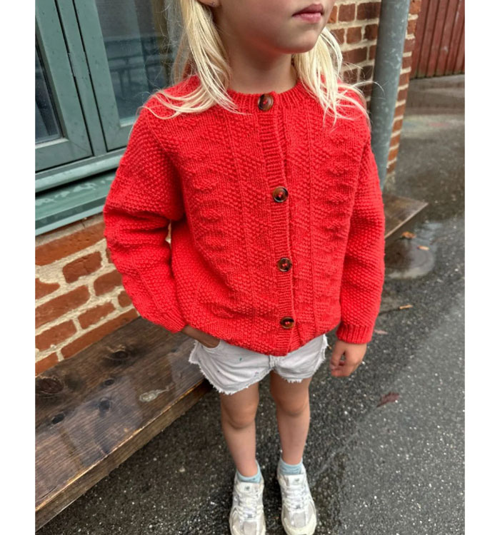 Petiteknit 디자이너 Mette 의 Little Esther Jacket 은 Isager의 Jensen과 Tvinni 실을 사용해 탑다운 방식으로 뜨는 디자인입니다. 같은 디자인의 성인 사이즈가 있습니다.