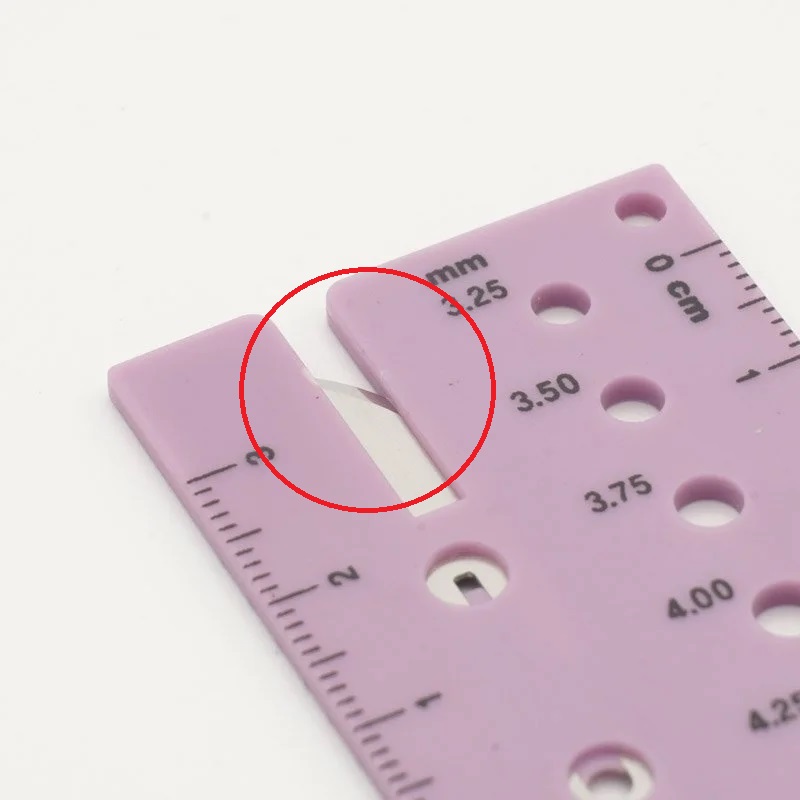 게이지자는 지워진 뜨개 바늘의 치수를 측정할 수 있습니다. ( 3.25mm ~ 8.00mm / 총 13가지 )