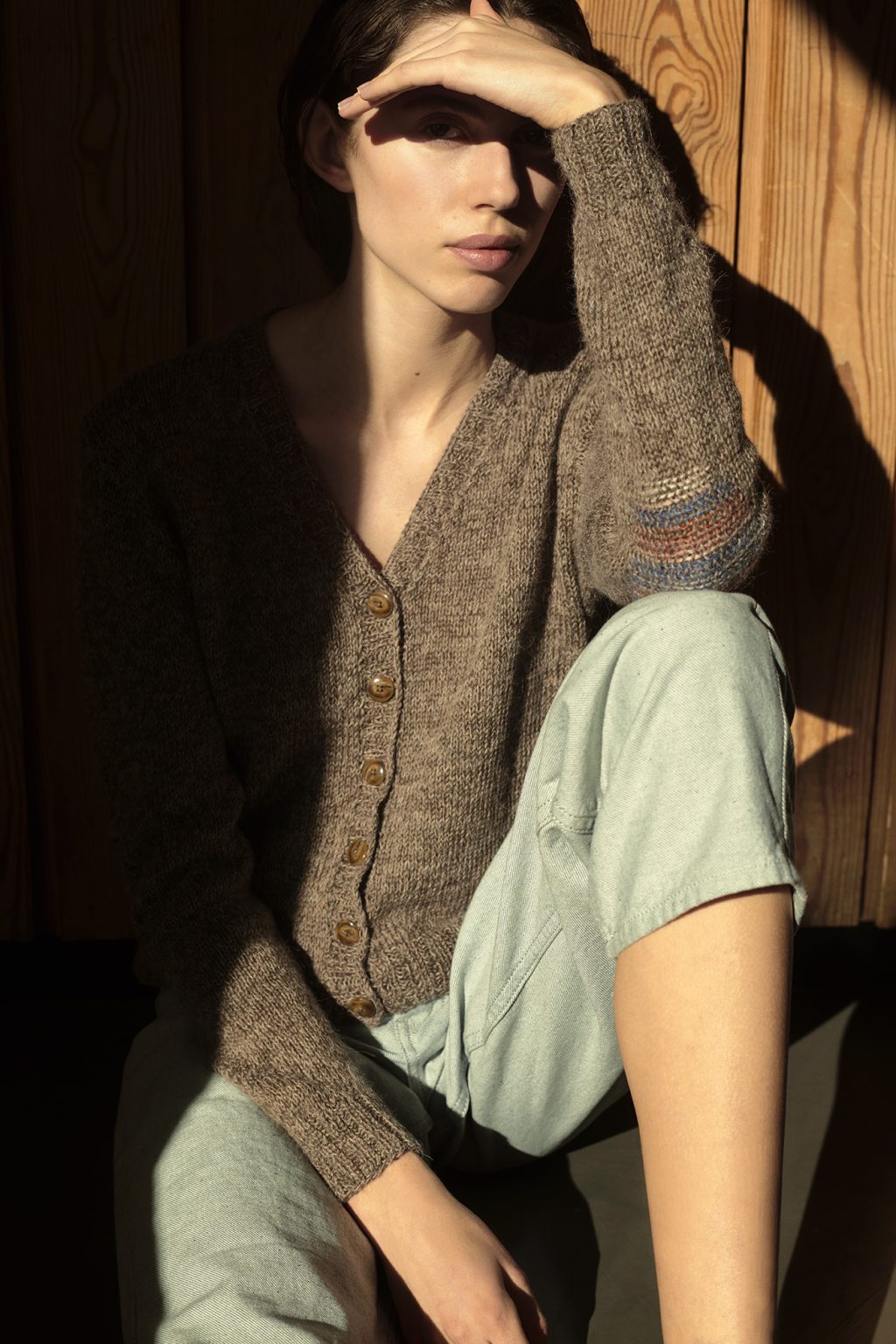 1. 이 가디건은 Isager Hør Organic 과 Isager Alpaca 1 실을 한겹씩 함께 잡아 바텀업으로 제작됩니다.