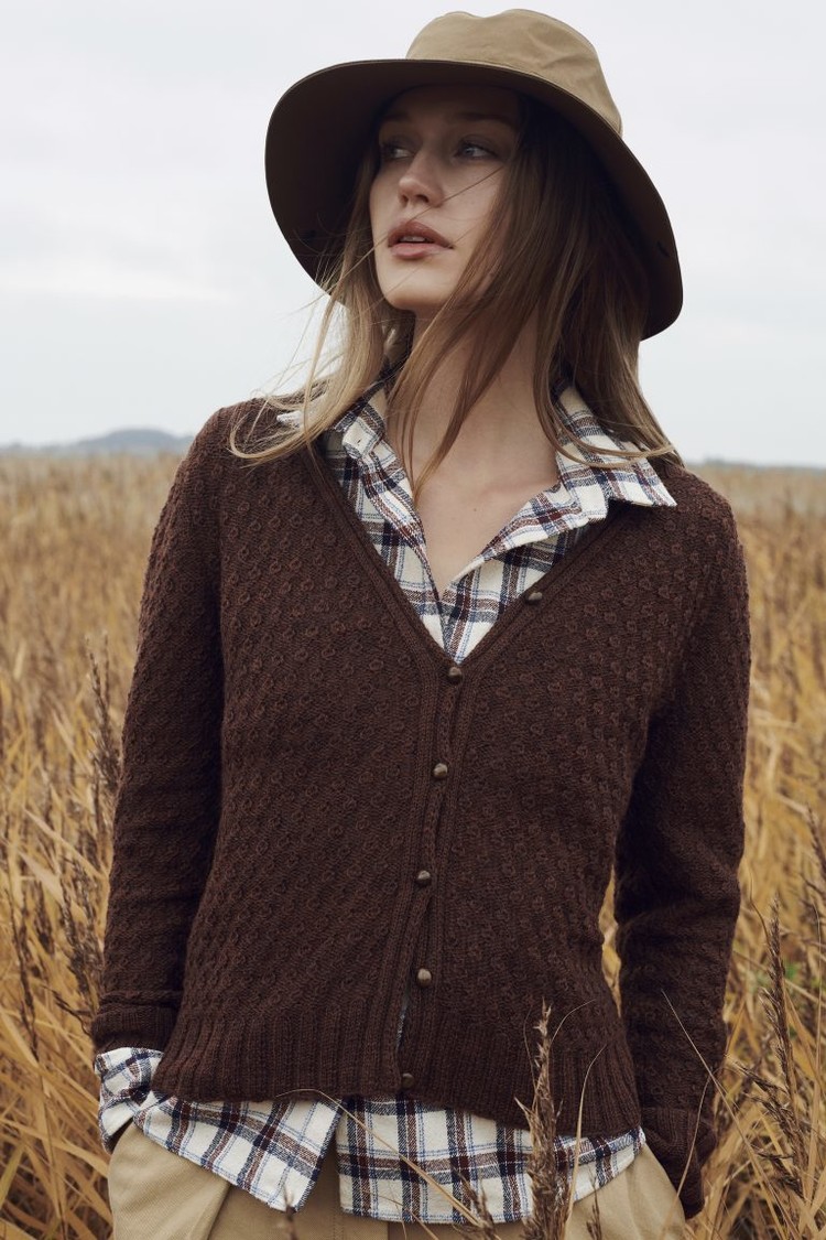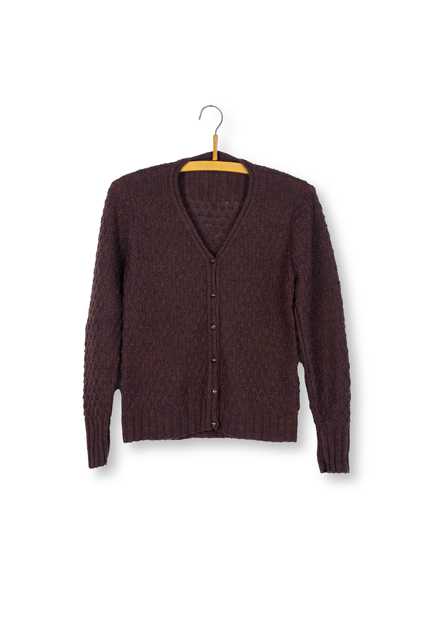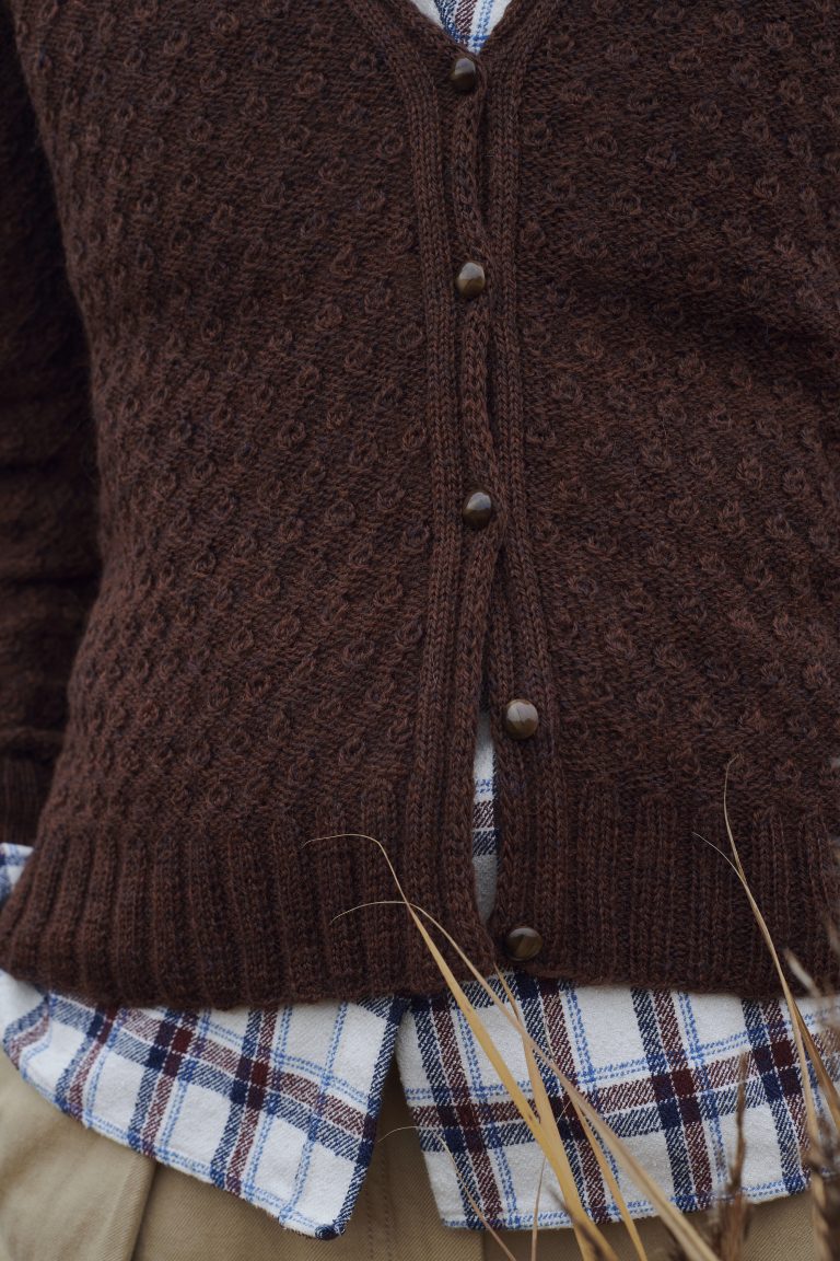 The cardigan is worked from the bottom up and sleeves are sewn in.
