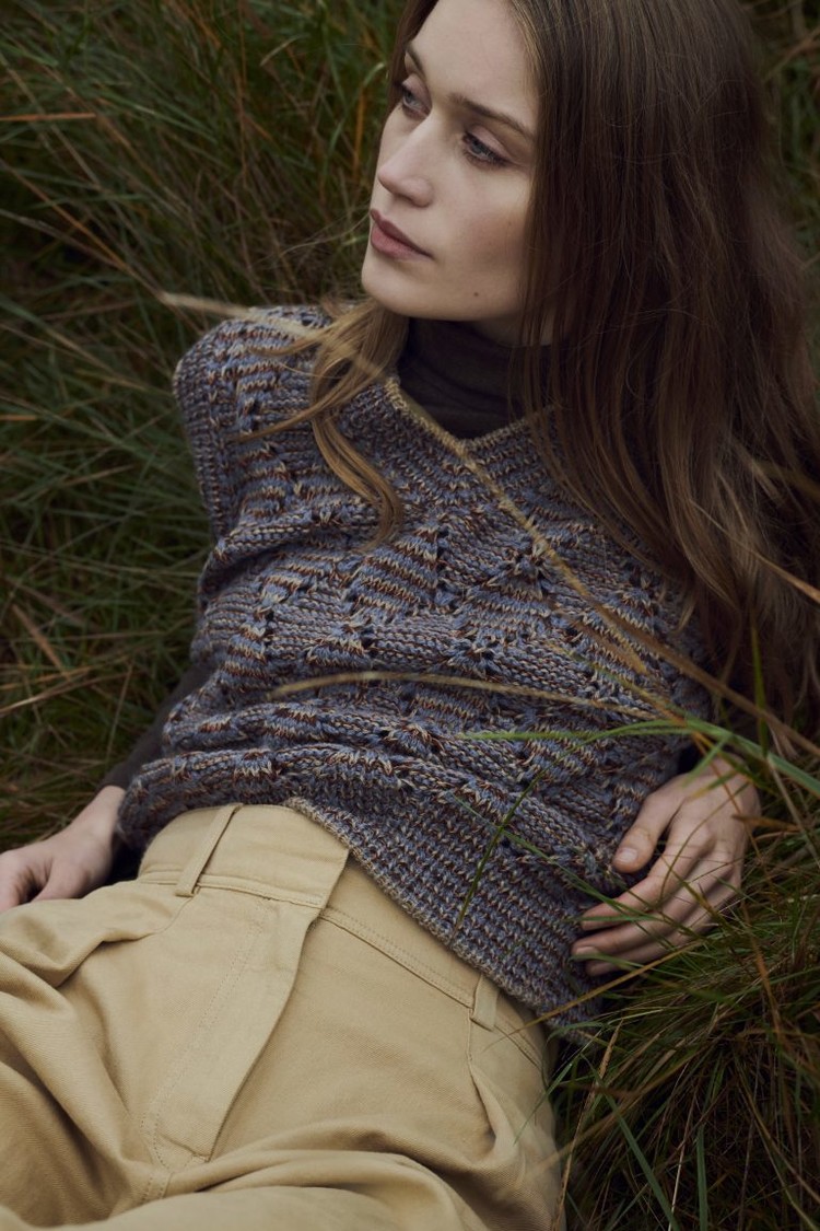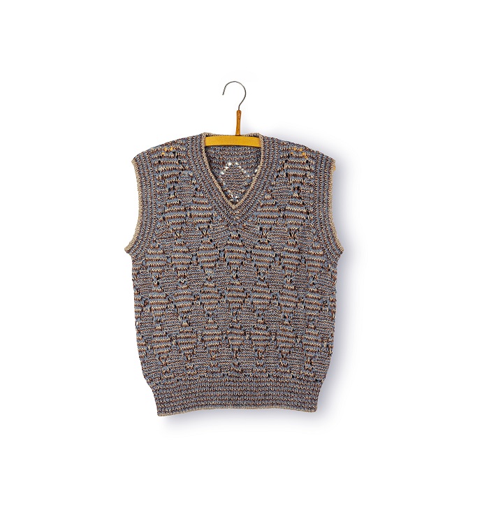 The vest has a V-neck and short rows are worked on the shoulders to create a good fit.