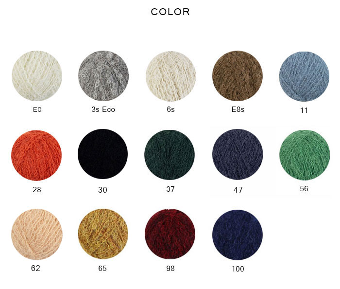 A 색상 | Isager Bouclé | 12 | 50g | 200g | 200g | 250g | 250g | 300g | 350g | 350g |