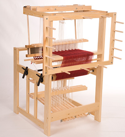 Glimakra's Julia loom weaves 26 inches wide and can be ordered as either a countermarch or counterbalance. If you purchase Julia as a four shaft loom, you can later add the other four shafts. It is a great loom for both the beginner and experienced weaver looking for a compact floor loom.